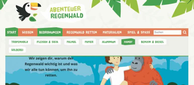 Die Website von Abenteuer Regenwald begeistert junge Menschen für den faszinierendsten Lebensraum der Erde.