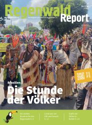 Cap mit Aufdruck Tukan und Schriftzug "Rettet den Regenwald" auf Stirnseite, Farbe beige, 100% Baumwolle, Stirnseite leicht verstärkt, Einheitsgröße mit Verschluß zum Regulieren (hinten)